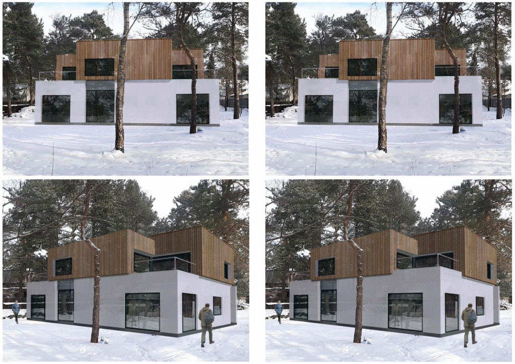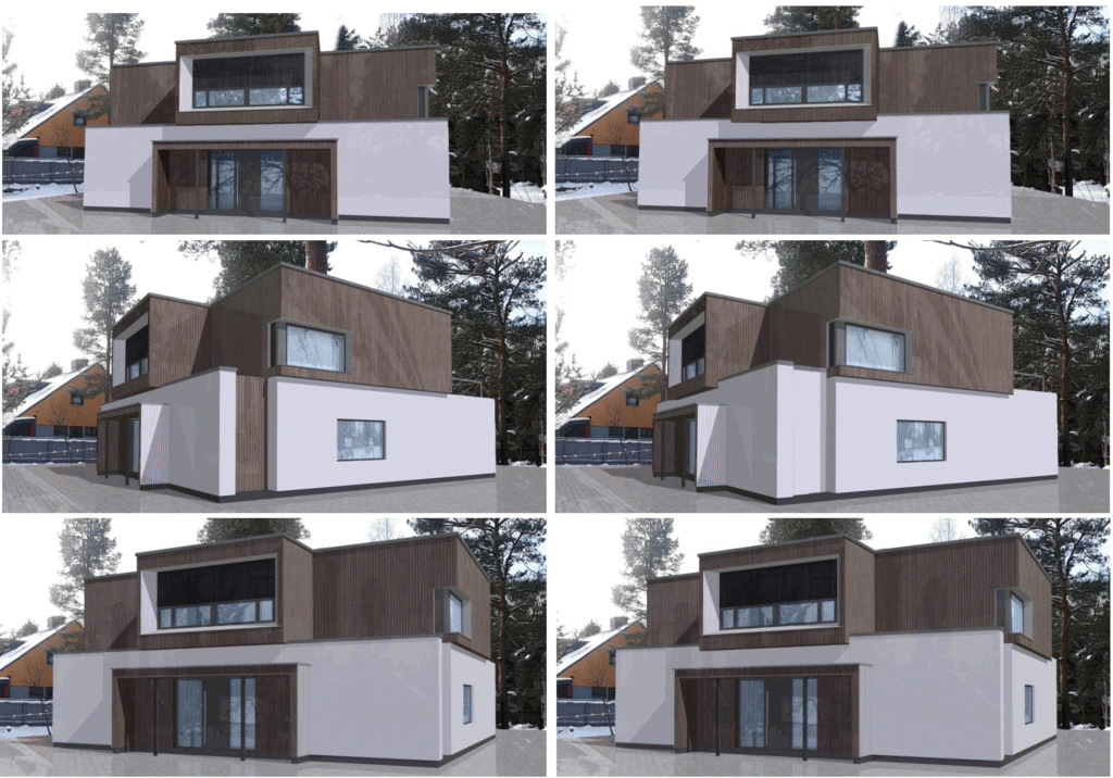 • Teise korruse fassaadikatte laudise lahendus (lisakihist vertikaalsetest prussidest loobutud)
